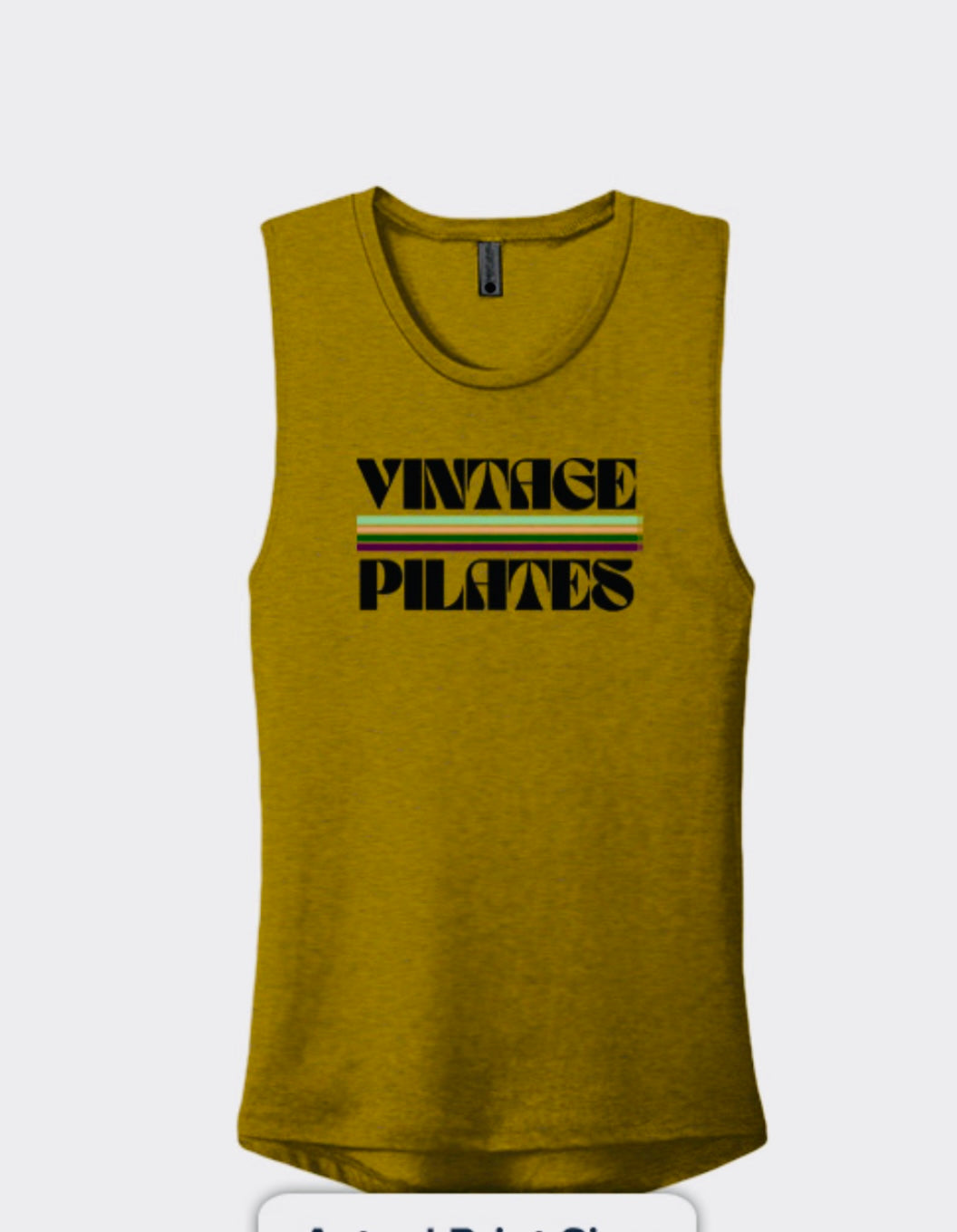 Soft gold sleeveless t-shirt with our signature 1960's graphic. Perfect to wear during your workout or outside the studio with your favorite pair of jeans.